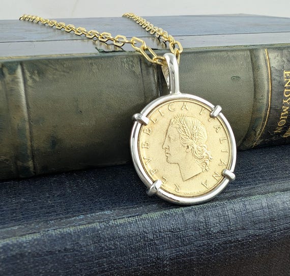 Vintage Netherlands Silver One Gulden in Handmade Sterling Silver Pendant Vintage Netherlands Silver One Gulden in Handmade Sterling Silver Pendant $185.00 Italy Coin Jewelry with Vintage Italian 20 Lire Coin in Handmade Sterling Silver Pendant Italy Coin Jewelry with Vintage Italian 20 Lire Coin in Handmade Sterling Silver Pendant $125.00 Coin Jewelry with Fiji Sixpence Turtle Coin in Handmade Sterling Silver Pendant Setting Coin Jewelry with Fiji Sixpence Turtle Coin in Handmade Sterling Silver Pendant Setting $135.00 US Coin Jewelry with Vintage Walking Liberty Half Dollar in Handmade Pendant Setting US Coin Jewelry with Vintage Walking Liberty Half Dollar in Handmade Pendant Setting $325.00 Sterling Silver India Coin Pendant Necklace, Vintage 1970 Lotus Sterling Silver India Coin Pendant Necklace, Vintage 1970 Lotus $135.00 1928 Irish Hare Coin Pendant, Handmade 14k Gold Setting 1928 Irish Hare Coin Pendant, Handmade 14k Gold Setting $2,575.40 1942 Fiji Turtle Silver Sixpence in Handmade 14k Gold Pendant Setting 1942 Fiji Turtle Silver Sixpence in Handmade 14k Gold Pendant Setting $2,717.57 Coin Jewelry with Vintage Free State Ireland Hare Coin in Handmade Sterling Silver Pendant Coin Jewelry with Vintage Free State Ireland Hare Coin in Handmade Sterling Silver Pendant $145.00 Horse Coin Jewelry with Vintage Irish 20P in Handmade Sterling Silver Pendant Horse Coin Jewelry with Vintage Irish 20P in Handmade Sterling Silver Pendant $175.00 Vintage France Morlon Art Deco Centimes French Coin in Handmade Sterling Silver Pendant Setting Vintage France Morlon Art Deco Centimes French Coin in Handmade Sterling Silver Pendant Setting $120.00 Coin Jewelry with Vintage Walking Liberty Half Dollar in Handmade 14k Gold & Silver Pendant Coin Jewelry with Vintage Walking Liberty Half Dollar in Handmade 14k Gold & Silver Pendant $925.00 Scottish Thistle Coin Pendant, Vintage UK New Pence, Handmade Sterling Silver Pendant Setting Scottish Thistle Coin Pendant, Vintage UK New Pence, Handmade Sterling Silver Pendant Setting $135.00 Coin Jewelry Vintage Ireland Half Coroin Horse Coin in Handmade Sterling Silver Pendant Coin Jewelry Vintage Ireland Half Coroin Horse Coin in Handmade Sterling Silver Pendant $250.00 France Coin Jewelry Vintage 1962 Roty Silver Five Franc in Handmade Silver Setting France Coin Jewelry Vintage 1962 Roty Silver Five Franc in Handmade Silver Setting $325.00 Italy Coin Jewelry with Vintage Italian 20 Lire Coin in Handmade Sterling Silver Necklace Italy Coin Jewelry with Vintage Italian 20 Lire Coin in Handmade Sterling Silver Necklace $198.00 Horse Coin Jewelry Vintage Austrian Schilling Lipizzaner Dressage Horse  Handmade Sterling Silver Pendant Horse Coin Jewelry Vintage Austrian Schilling Lipizzaner Dressage Horse Handmade Sterling Silver Pendant $135.00 Birthday Coin Jewelry with Vintage Bahamas Coin in Handmade Sterling Silver Pendant Setting Birthday Coin Jewelry with Vintage Bahamas Coin in Handmade Sterling Silver Pendant Setting $135.00 South Korea Coin Jewelry Vintage 10 Won Dabotap Pagoda in Handmade Sterling Silver Pendant South Korea Coin Jewelry Vintage 10 Won Dabotap Pagoda in Handmade Sterling Silver Pendant $128.00 Italy Coin Jewelry with Antique Italian 20 Centesimi Coin in Handmade Sterling Silver Setting Italy Coin Jewelry with Antique Italian 20 Centesimi Coin in Handmade Sterling Silver Setting $125.00 German Coin Jewelry with Vintage Art Deco 10 Pfennig in Handmade Sterling Silver Necklace German Coin Jewelry with Vintage Art Deco 10 Pfennig in Handmade Sterling Silver Necklace $185.00